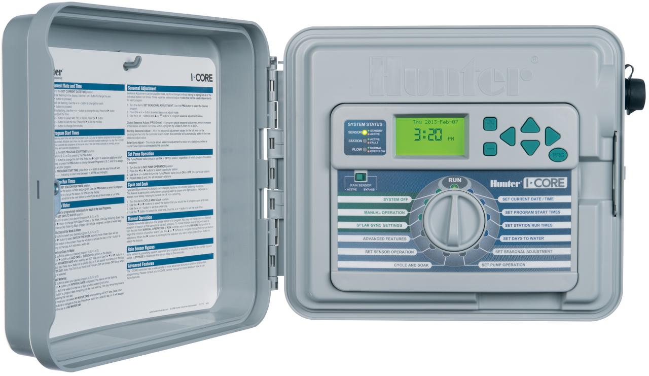Vonkajšia (exteriérová), modulárna riadiaca jednotka, základ pre 6 sekcií a rozšíriteľná pre 30 sekcií (plastová skrinka) a pre 42 sekcií (kovová skrinka) pomocou rozširovacích modulov ICM-600, 230V/24V, interné vstavané trafo