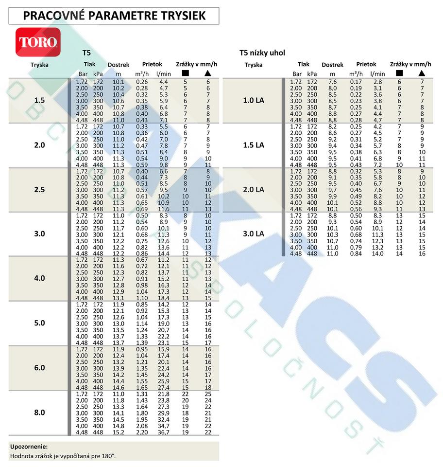 Toro rotačný postrekovač T5HP-RS, výsuv 30 cm + sada trysiek