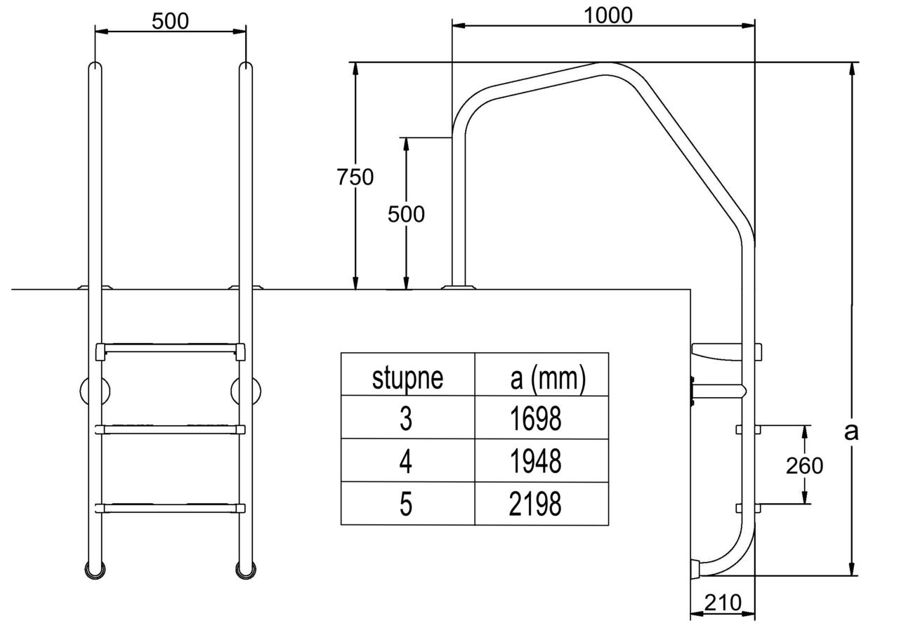 Flexinox rebrík ARC SPECIALE 4 stupňový + nášlap AISI 316