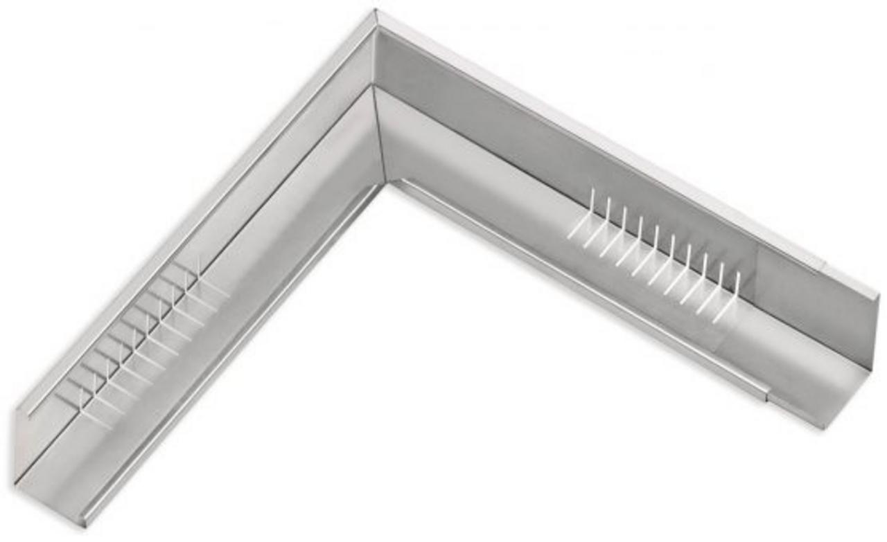 Prefabrikovaný hliníkový rohový profil kompatibilný s okrajovým profilom SP AL 120/80 určený na profesionálne a estetické oddeľovanie rôznych materiálov na zelených strechách. Tento 5-krát ohýbaný prvok umožňuje vytvárať rohy s ľubovoľným uhlom.