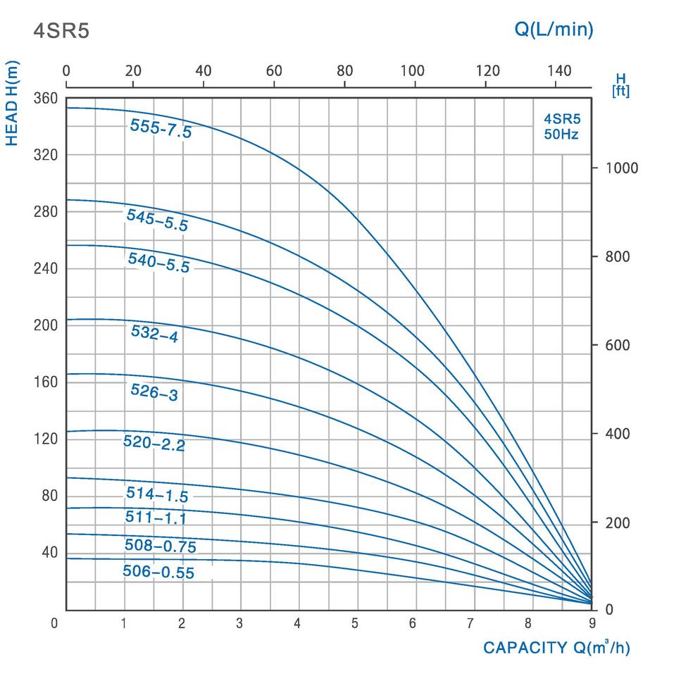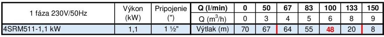 • Optimálny pracovný bod: 100 l/min pri 48 m.