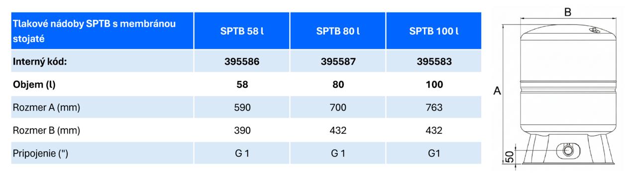 Stojatá tlaková nádoba SPTB 80 l s fixnou membránou a nerezovým pripojením
