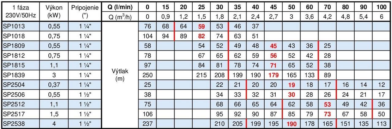 • Výtlačné pripojenie: 1 1/2" (6/4") vnútorný závit.