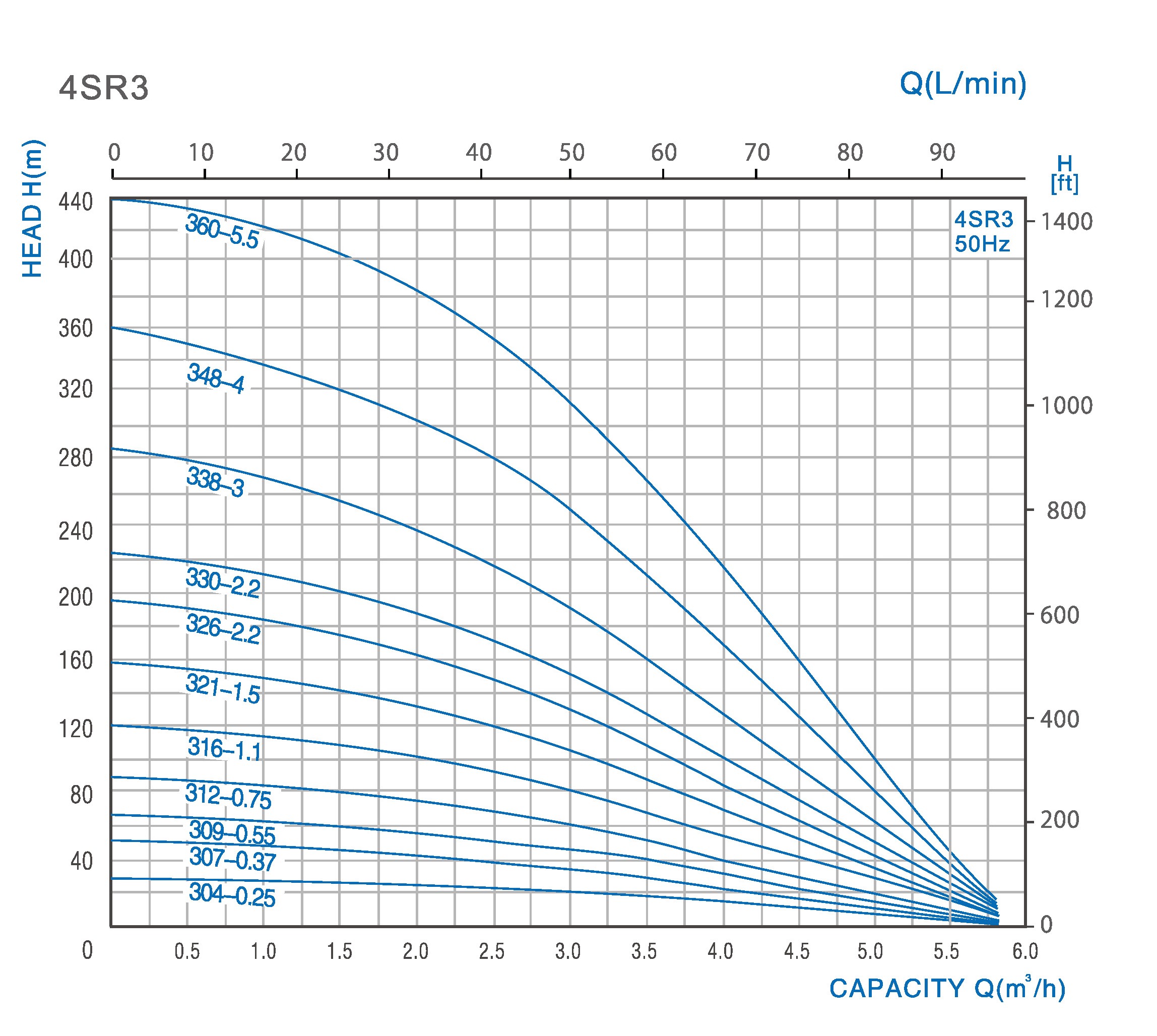 • Optimálny pracovný bod: 50 l/min pri 45 m.