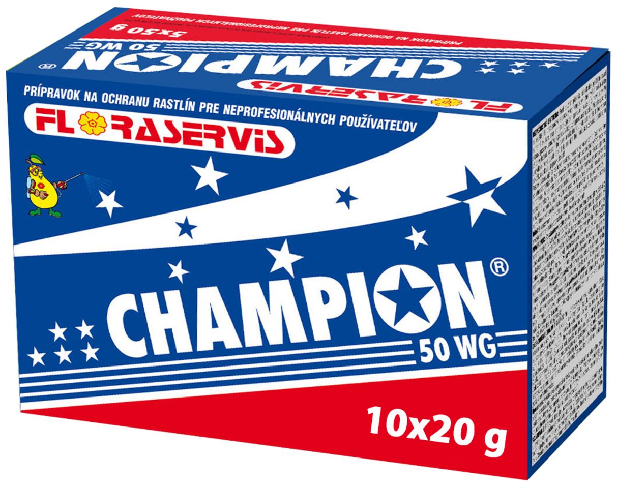 CHAMPION 50WG je postrekový kontaktný fungicídny prípravok vo forme vodou dispergovateľných granúl určený na ochranu rajčiaka, uhorky, chmeľu, viniča, zemiaka a broskyne proti hubovým chorobám.