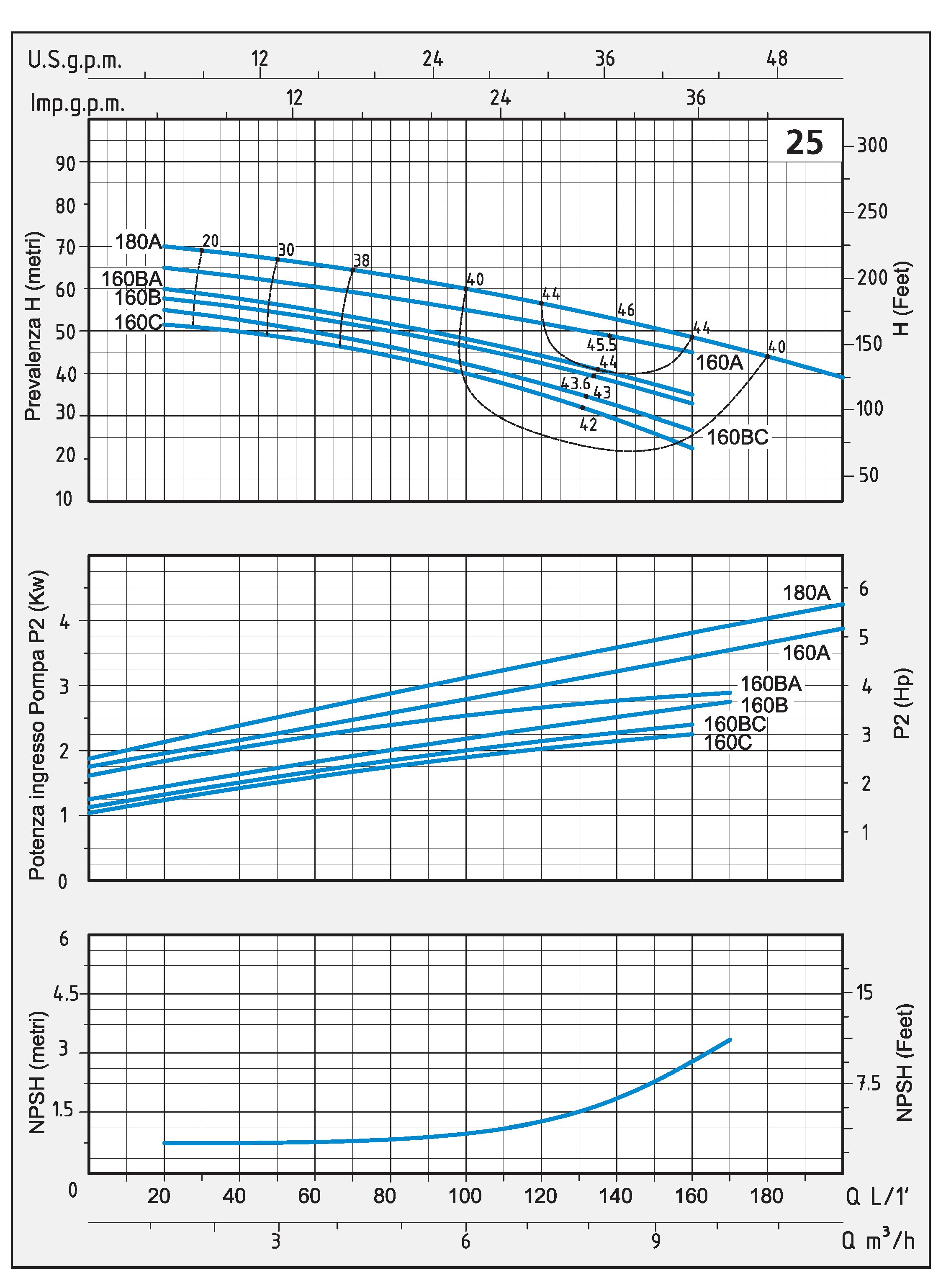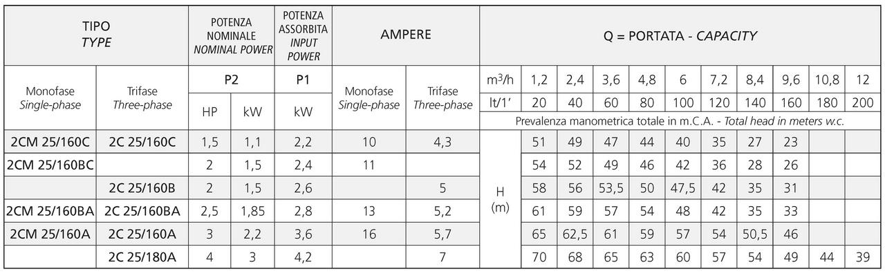 Speroni 2C 25/160A je robustné dvojstupňové odstredivé čerpadlo s výkonom 2,2 kW (3 HP), určené pre priemyselné a poľnohospodárske aplikácie vyžadujúce vysoký tlak. Vďaka konštrukcii s dvoma mosadznými obežnými kolesami dosahuje výtlak až 65 metrov a prietok 160 l/min. Je ideálnym riešením pre tlakové stanice, závlahové systémy a technologické prevádzky s trojfázovým napájaním.