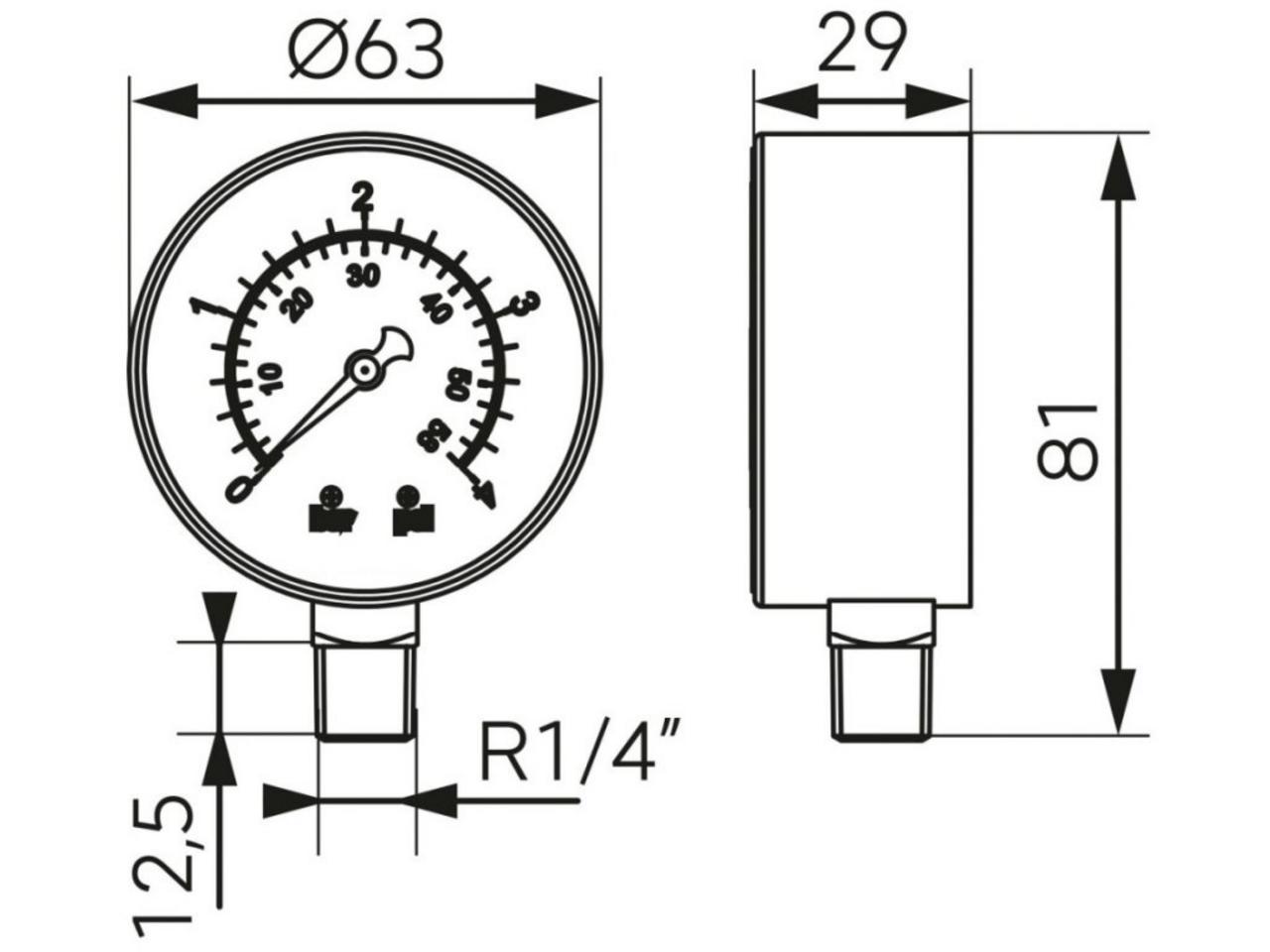 Glycerínový manometer 1/4" s bočným pripojením (0 – 10 bar)