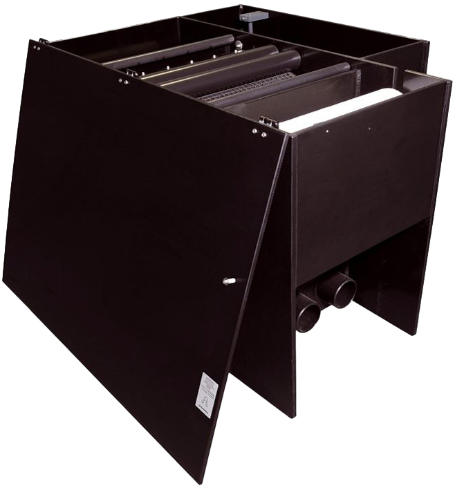nízky gravitačný bubnový filter určený na mechanické čistenie vody v jazierkach, ktorý filtruje vodu do krištáľovo čistej podoby. S maximálnym prietokom 20 000 litrov za hodinu je vhodný pre koi jazierka do 30 000 l a kúpacie jazierka do 90 000 l. Vďaka svojej zníženej konštrukcii prečnieva iba 10 cm nad hladinu vody, čo umožňuje nenápadnú inštaláciu.