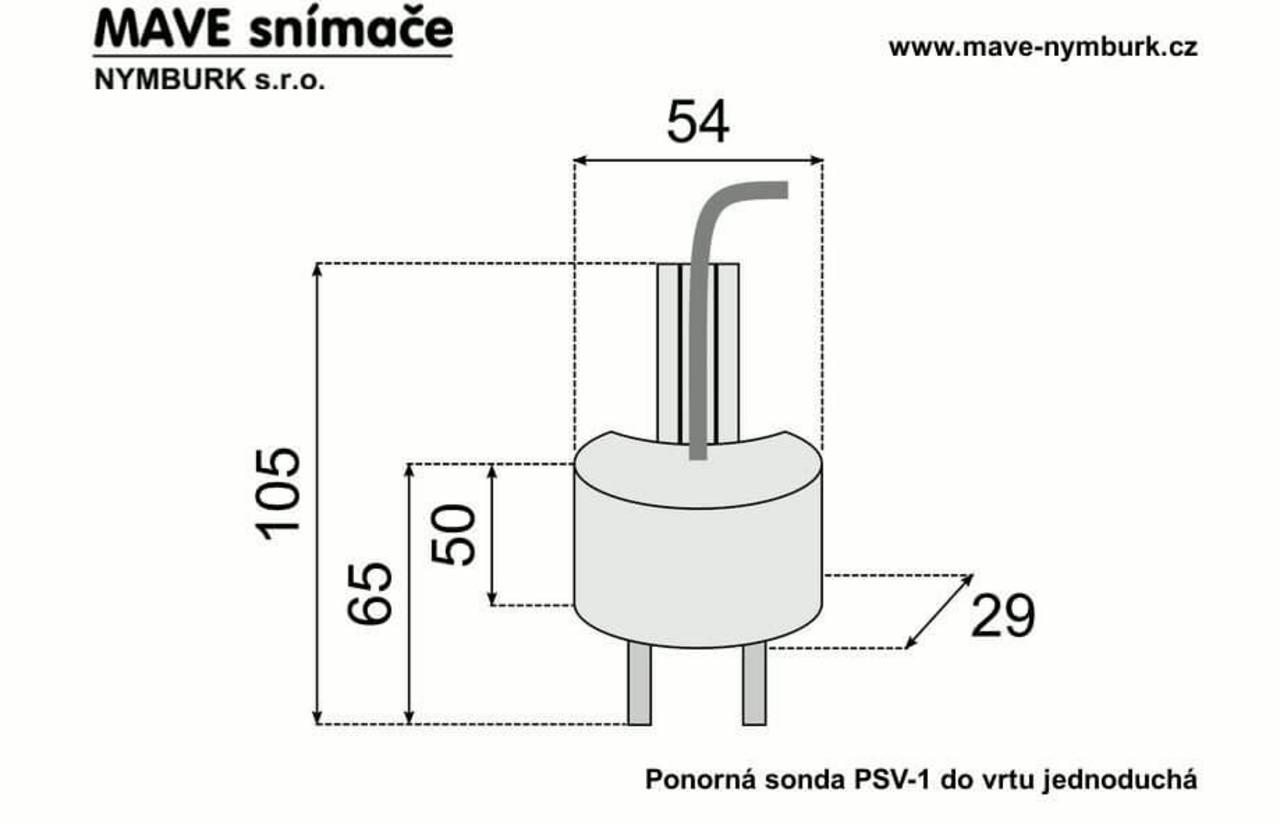Ponorná vodivostná sonda MAVE PSV-1 je určená na detekciu hladiny v studniach, vrtoch a nádržiach, pričom je plne certifikovaná pre trvalý styk s pitnou vodou. Tvorí ju elektróda z nerezovej ocele zaliata v odolnom puzdre s pevne pripojeným 5-metrovým káblom, čo zaručuje dokonalú vodotesnosť. Je ideálnym doplnkom k hladinovým spínačom radu MAVE 2-HH.