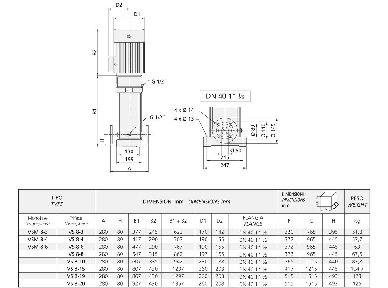 • Priestorová úspornosť (In-line): Vertikálny dizajn s hrdlami v jednej osi (sanie a výtlak naproti sebe) minimalizuje nároky na podlahovú plochu a zjednodušuje montáž priamo do potrubnej trasy.