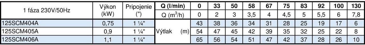 Ponorné čerpadlo JIADI 125SCM405A predstavuje zosilnenú verziu v rade 5-palcových čerpadiel, navrhnutú pre aplikácie vyžadujúce kombináciu vysokého objemu vody a dostatočného tlaku. S motorom o výkone 0,9 kW dosahuje výtlak 54 metrov a maximálny prietok až 130 l/min (7,8 m3/h). Vďaka väčšiemu priemeru (127 mm) je čerpadlo robustnejšie a disponuje efektívnejším chladením, čo ho predurčuje na inštaláciu do kopaných studní, zberných nádrží a širších vrtov. Konštrukcia z nehrdzavejúcej ocele AISI 304 a technopolyméru Noryl zaručuje dlhodobú odolnosť a bezúdržbovú prevádzku.