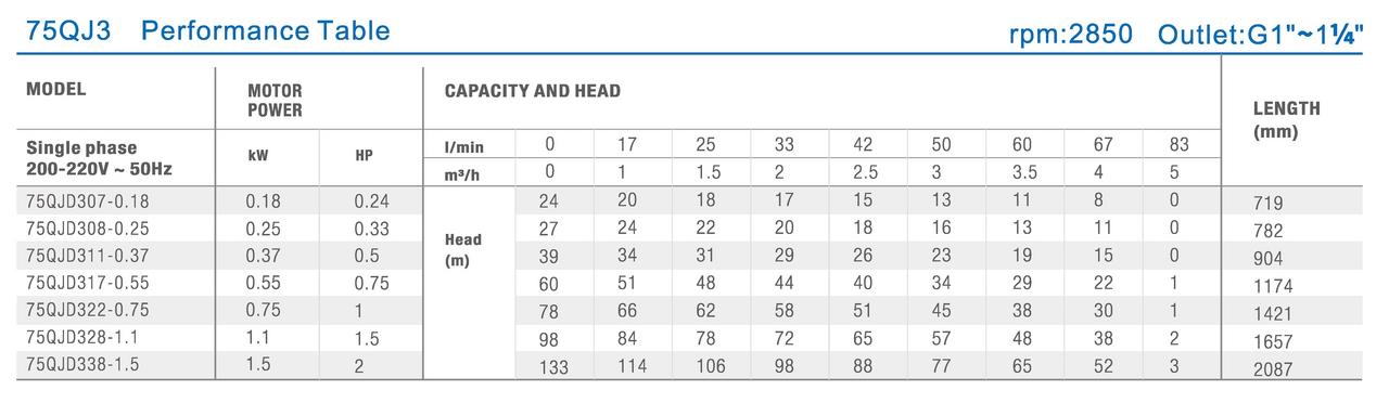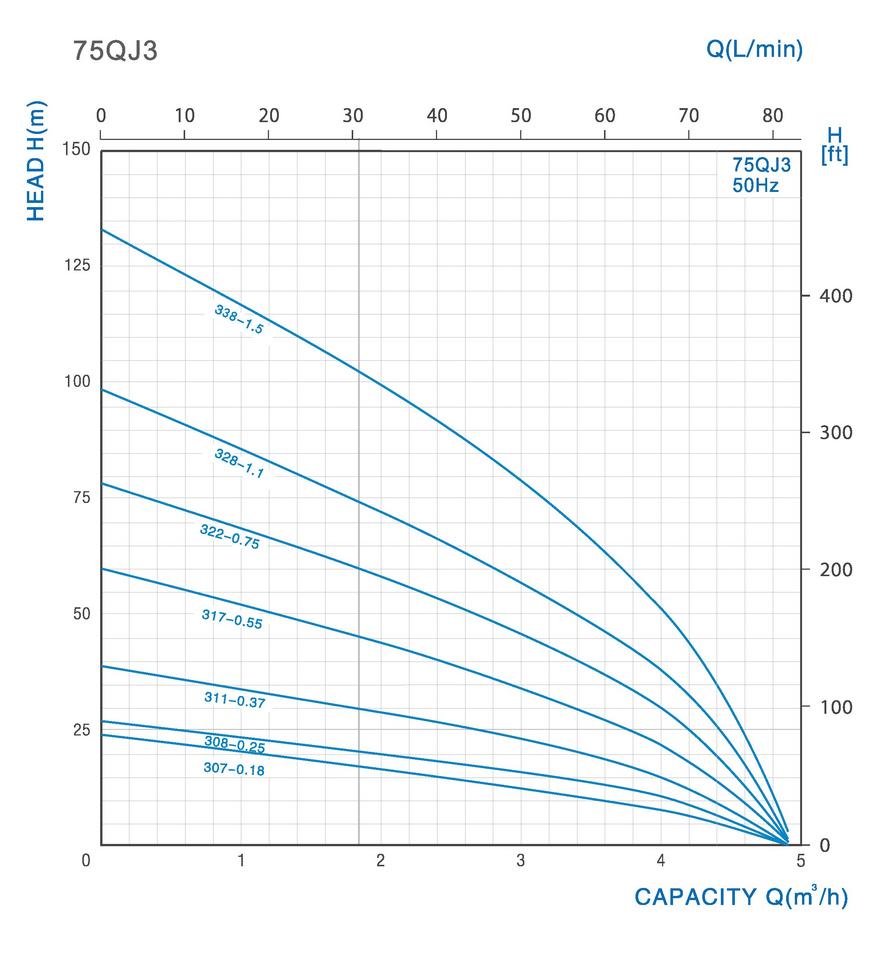 • Vysoký hydraulický výkon: V spojení s 0,75 kW motorom dosahuje hydraulika výtlak až 78 metrov a prietok 83 l/min, čo je ideálne pre hlbšie studne a náročné aplikácie.