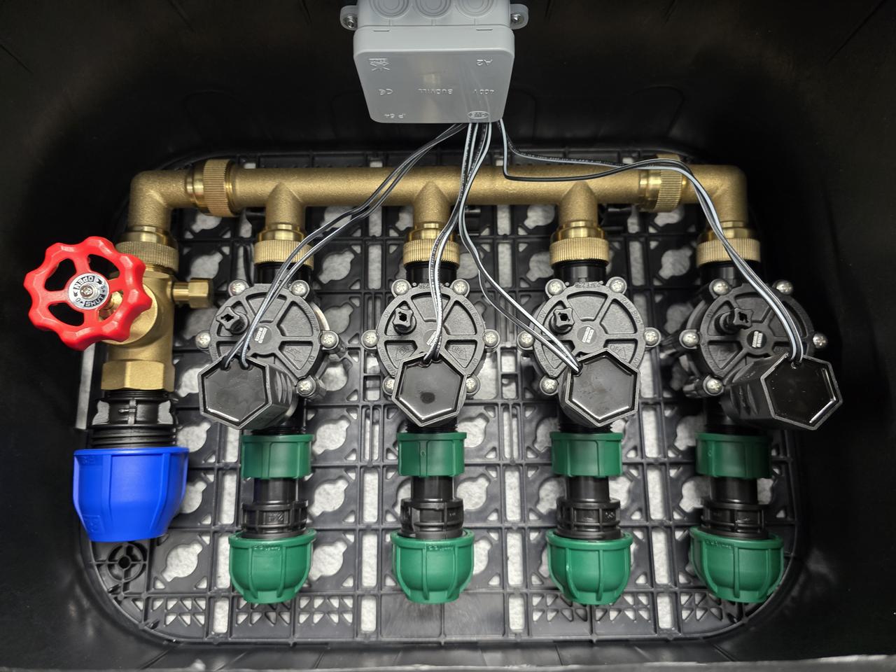 READYBOX Profi Rain Bird 4, 24V je predinštalovaný set ventilovej šachty pre 4 sekcie s 24V elektromagnetickými ventilmi Rain Bird 100-DV-MM a 1“ uzatváracím sedlovým ventilom. Zaručuje jednoduchú a rýchlu inštaláciu s precíznymi detailmi a profesionálnym prevedením.