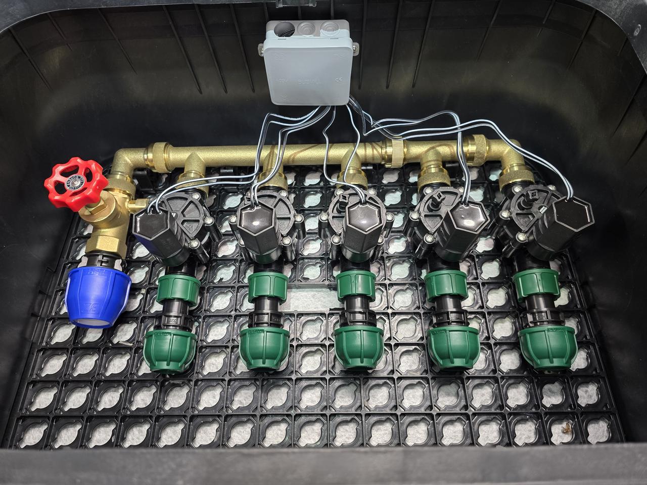 READYBOX Profi Rain Bird 5, 24V je predinštalovaný set ventilovej šachty pre 5 sekcií s 24V elektromagnetickými ventilmi Rain Bird 100-DV-MM a 1“ uzatváracím sedlovým ventilom. Zaručuje jednoduchú a rýchlu inštaláciu s precíznymi detailmi a profesionálnym prevedením.