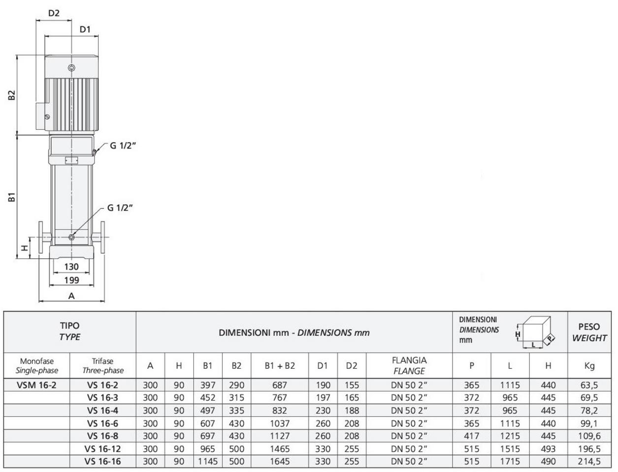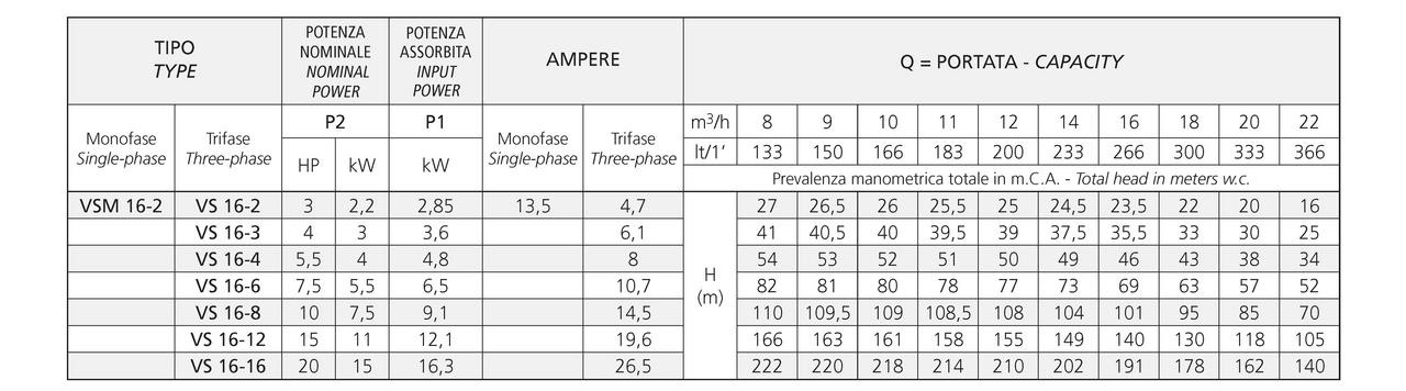Speroni VS 16-8 je profesionálne vertikálne viacstupňové čerpadlo s výkonom 7,5 kW, kompletne vyrobené z nerezovej ocele AISI 304. S extrémnym výtlakom až 110 metrov a schopnosťou čerpať kvapaliny s teplotou do 110 °C je ideálnym riešením pre priemyselné zvyšovanie tlaku, napájanie kotlov a technologické procesy. Vertikálny in-line dizajn šetrí miesto a uľahčuje inštaláciu do potrubných systémov.