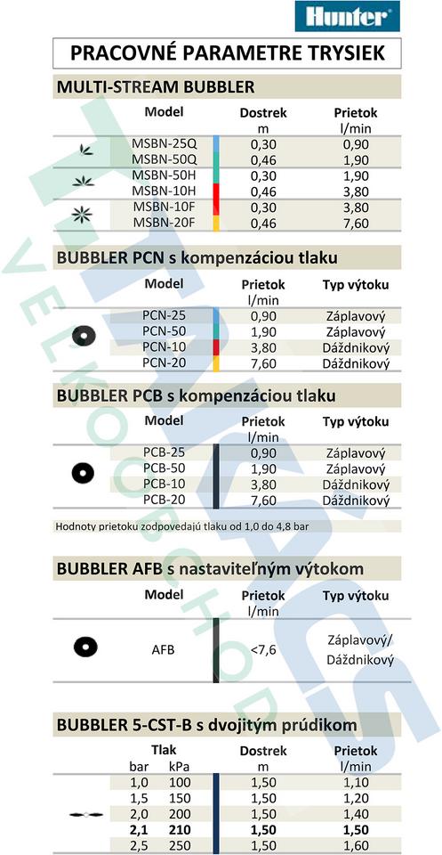- Kompatibilita: Závit vhodný pre všetky telesá Hunter Pro-Spray a bežné výsuvné postrekovače s vonkajším závitom na výsuvníku.