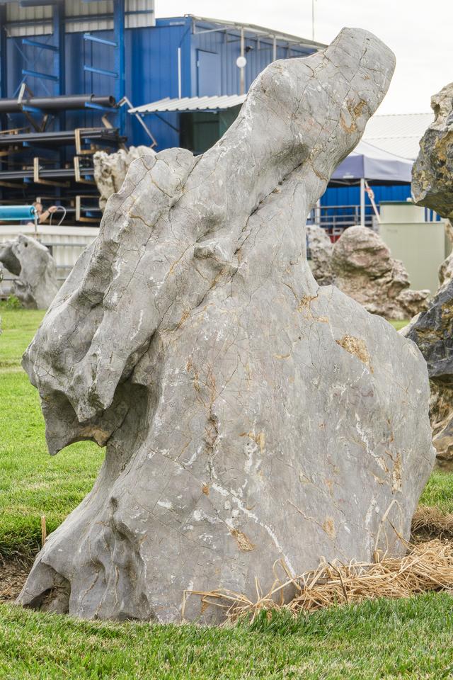Mimoriadne odolný prírodný kameň (monolit) s neopakovateľnou textúrou, ideálny ako centrálny, exkluzívny a bezúdržbový prvok pre záhrady, terasy alebo komerčné priestory.