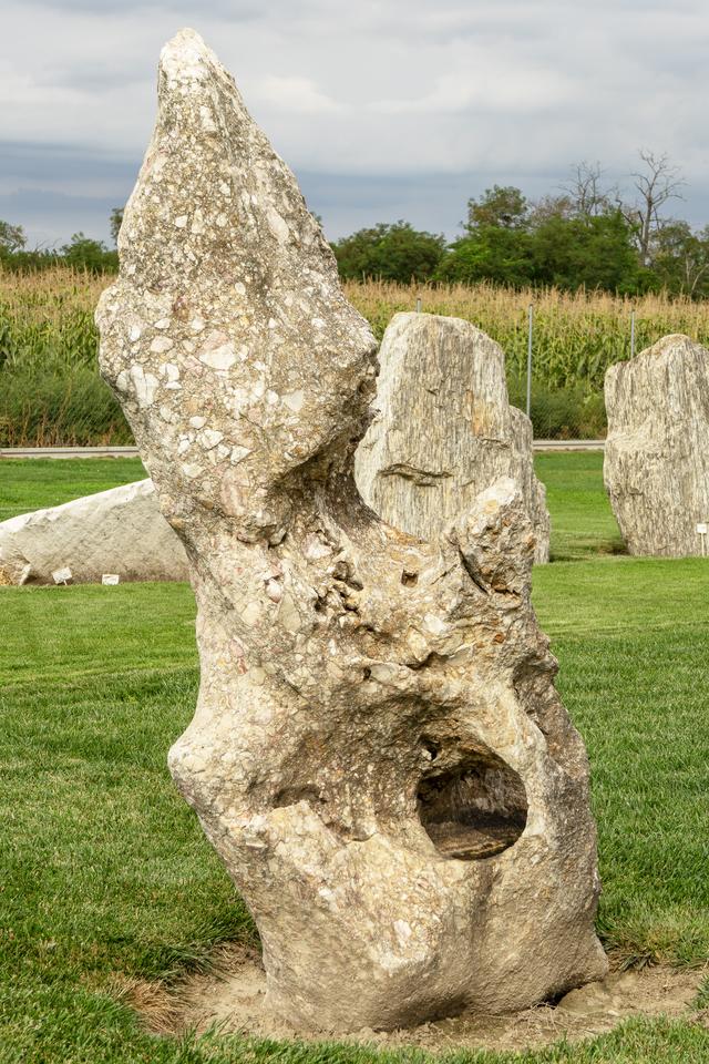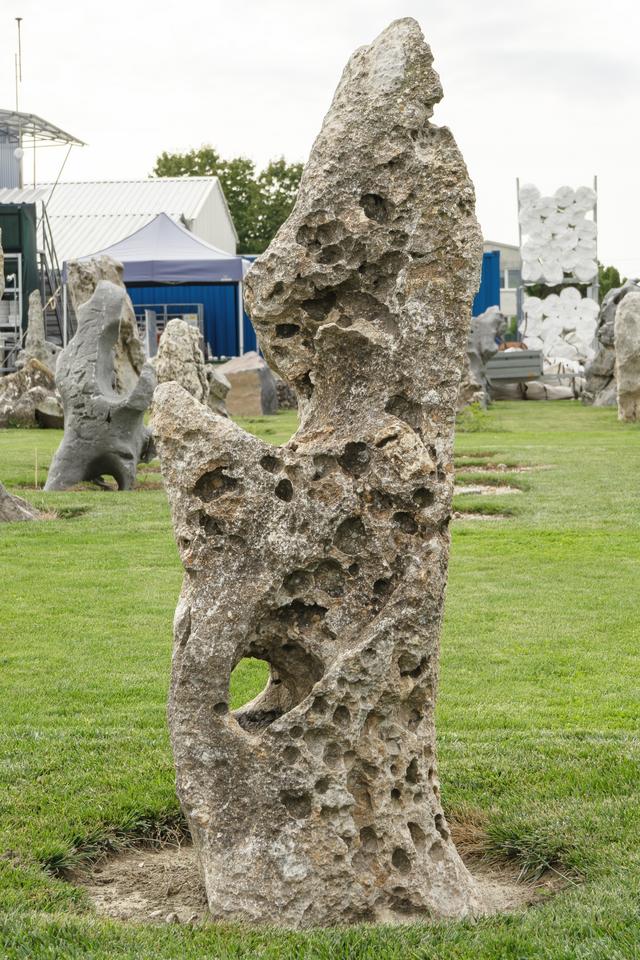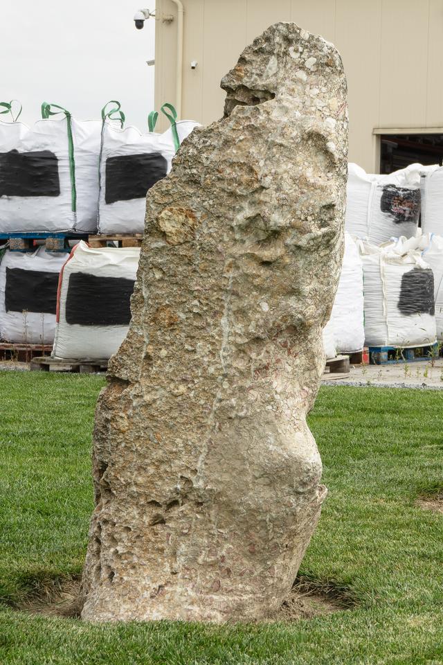 Mimoriadne odolný prírodný kameň (monolit) s neopakovateľnou textúrou, ideálny ako centrálny, exkluzívny a bezúdržbový prvok pre záhrady, terasy alebo komerčné priestory.