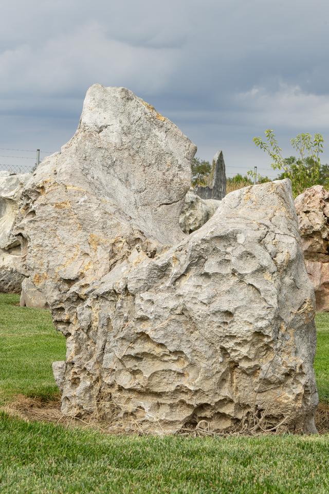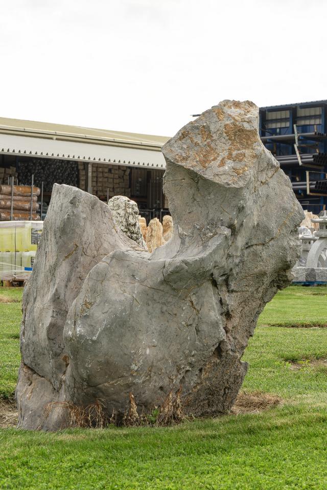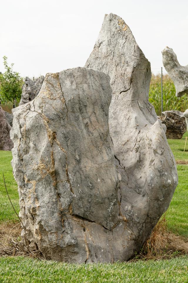Mimoriadne odolný prírodný kameň (monolit) s neopakovateľnou textúrou, ideálny ako centrálny, exkluzívny a bezúdržbový prvok pre záhrady, terasy alebo komerčné priestory.